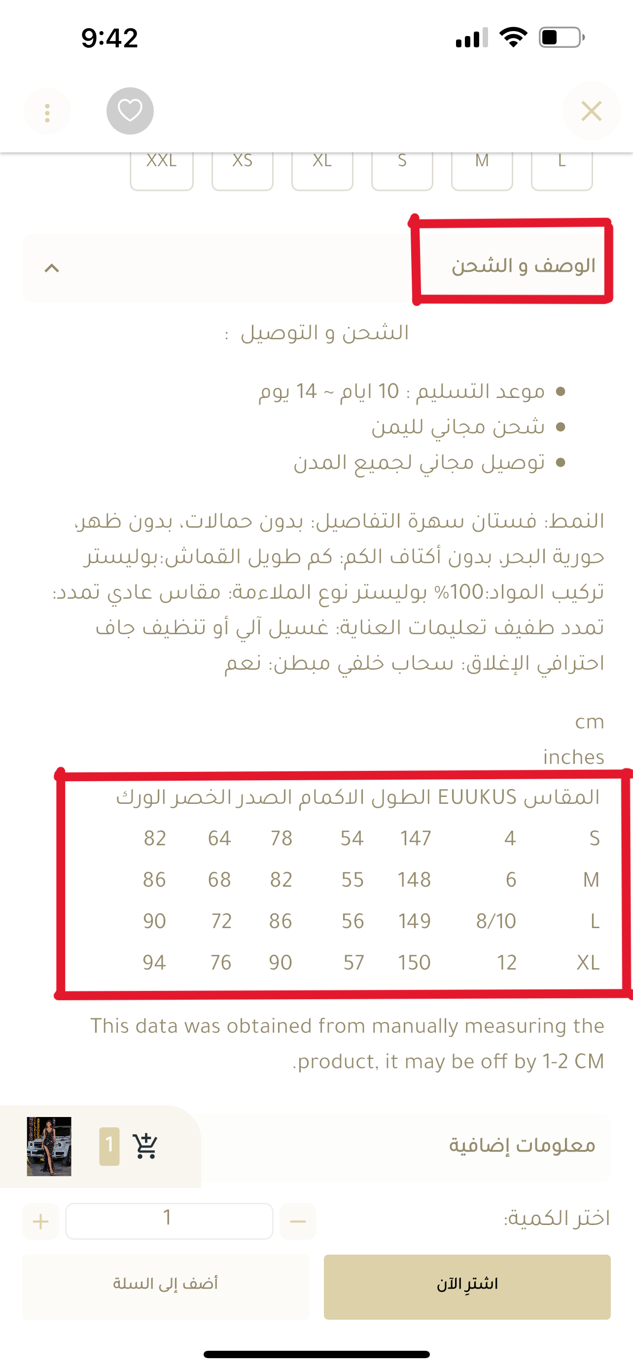 أضيفي بعض المنتجات في حقيبة التسوق , حددي المقاس، اللون والكمية إذا لزم الأمر. بالنسبة لبعض المنتجات، نحن قد نقترح المقاس لك. فقط إضغطي على “التحقق من مقاسي”. إضغطي على إضف إلى السلة