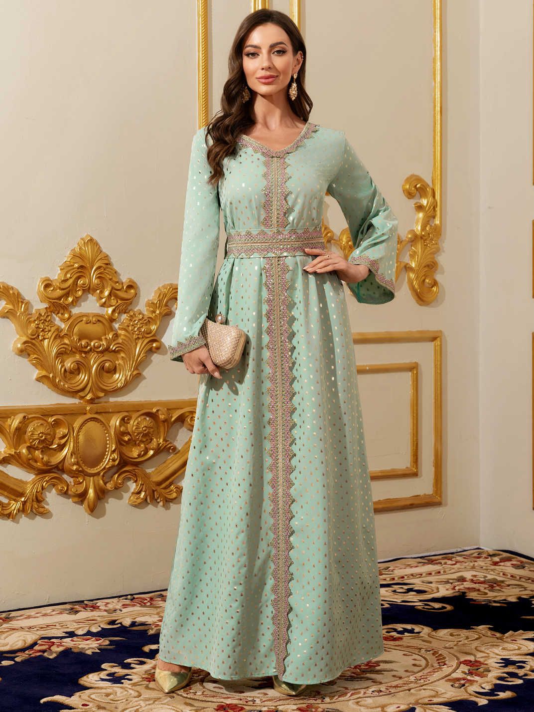 جلابية نسائية، بأكمام طويلة ورقبة على شكل V، بتصميم جديد.