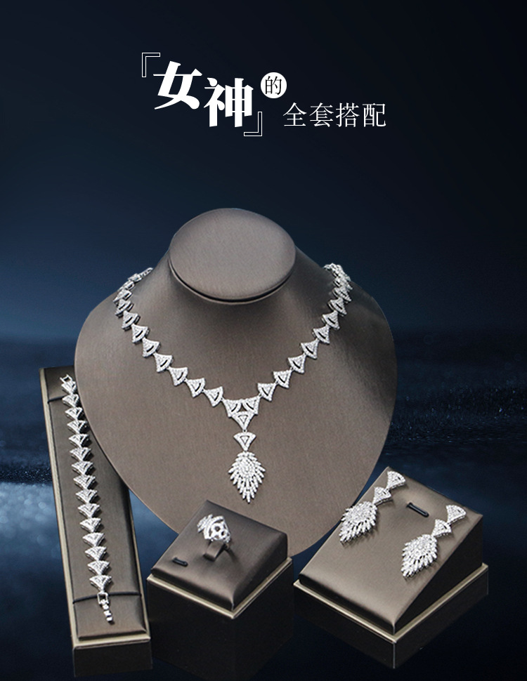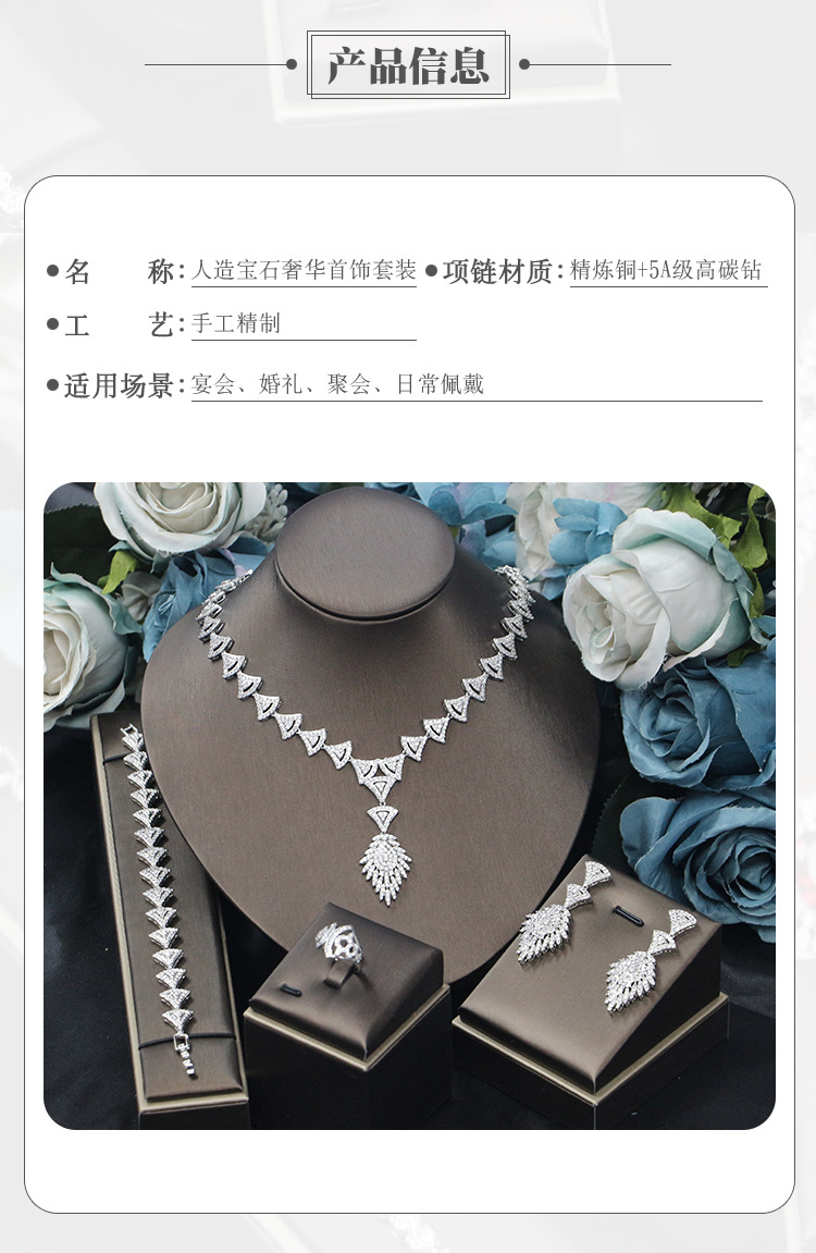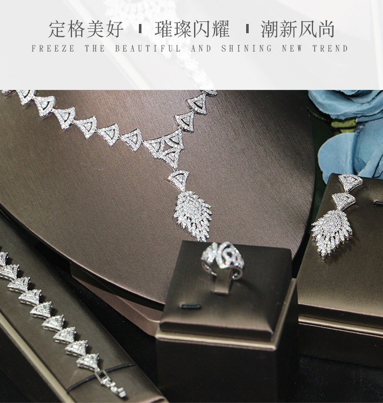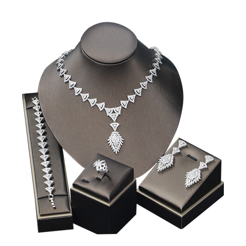 طقم مجوهرات زفاف من الزركون الأكثر مبيعًا، إكسسوارات أنيقة للمناسبات، مباشرة من المتجر