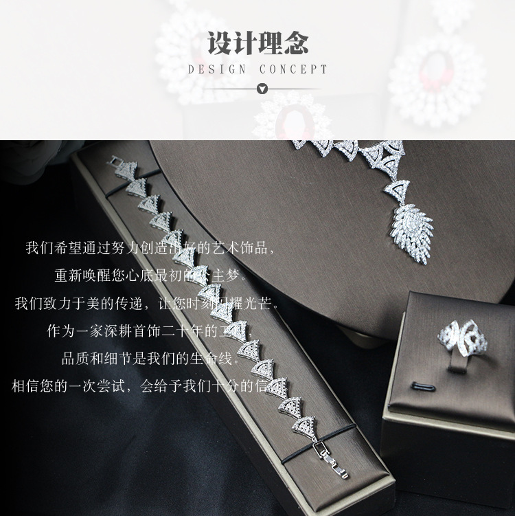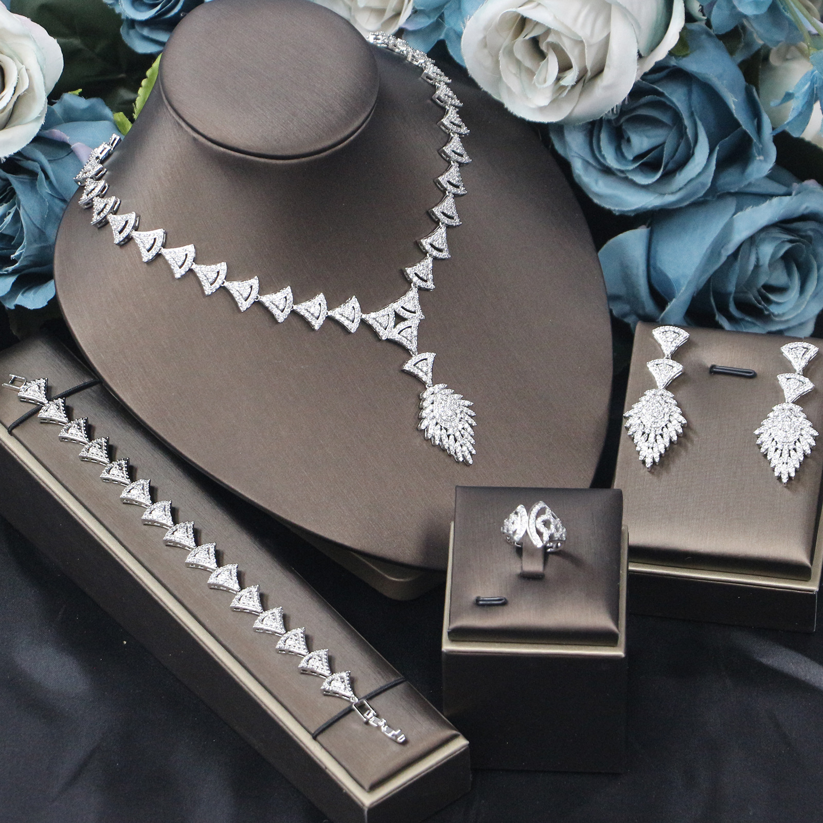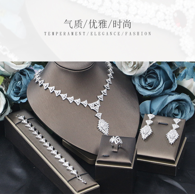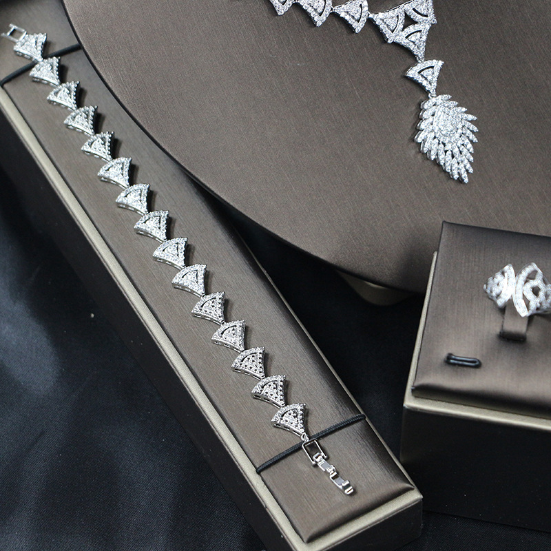 طقم مجوهرات زفاف مرصع بالزركونيا البراقة مكون من أربع قطع، مناسب للمناسبات الخاصة بالعرائس.