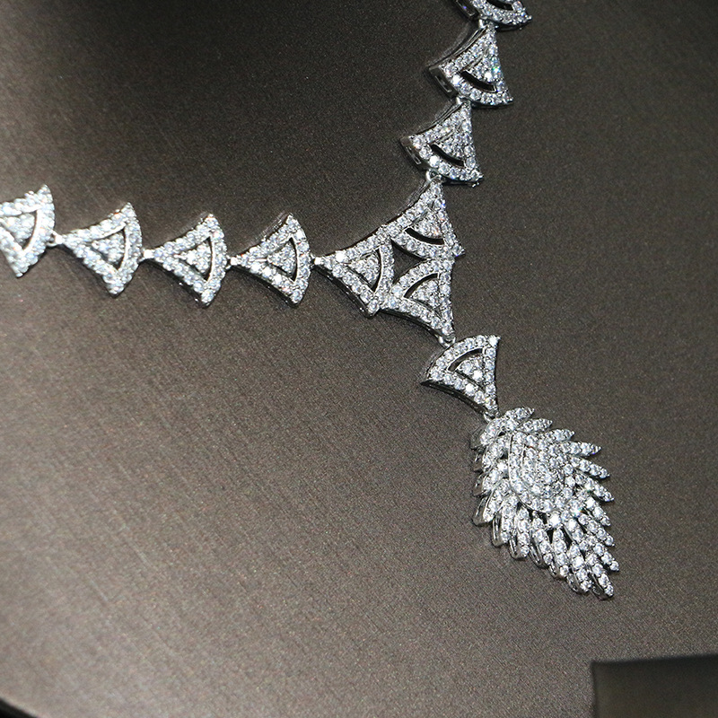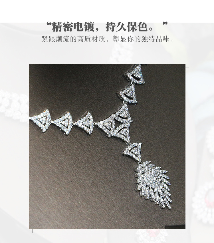 طقم مجوهرات زفاف، مناسبات أنيقة، إكسسوارات فستان، قلادة مرصعة بالزركون بتقنية الميكرو بافيه