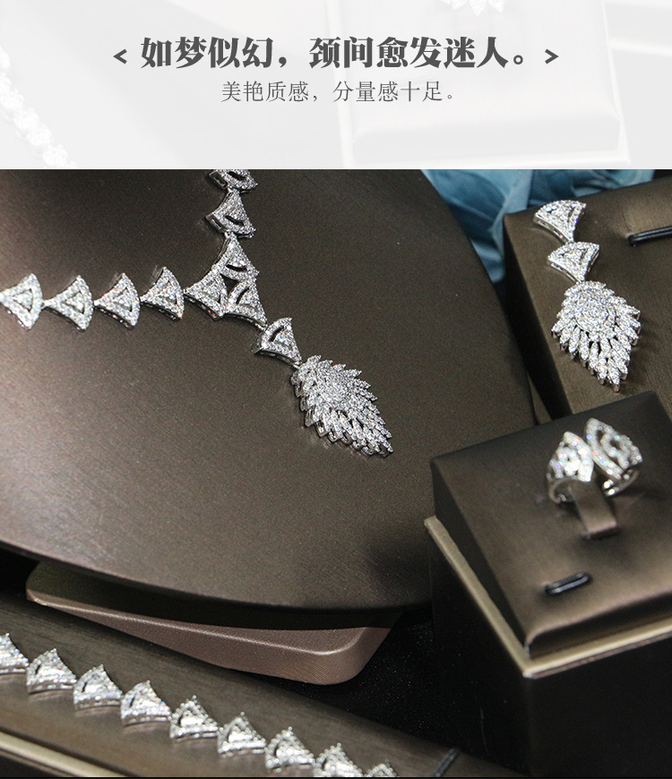 طقم مجوهرات زفاف، مناسبات أنيقة، إكسسوارات فستان، قلادة مرصعة بالزركون بتقنية الميكرو بافيه quantity