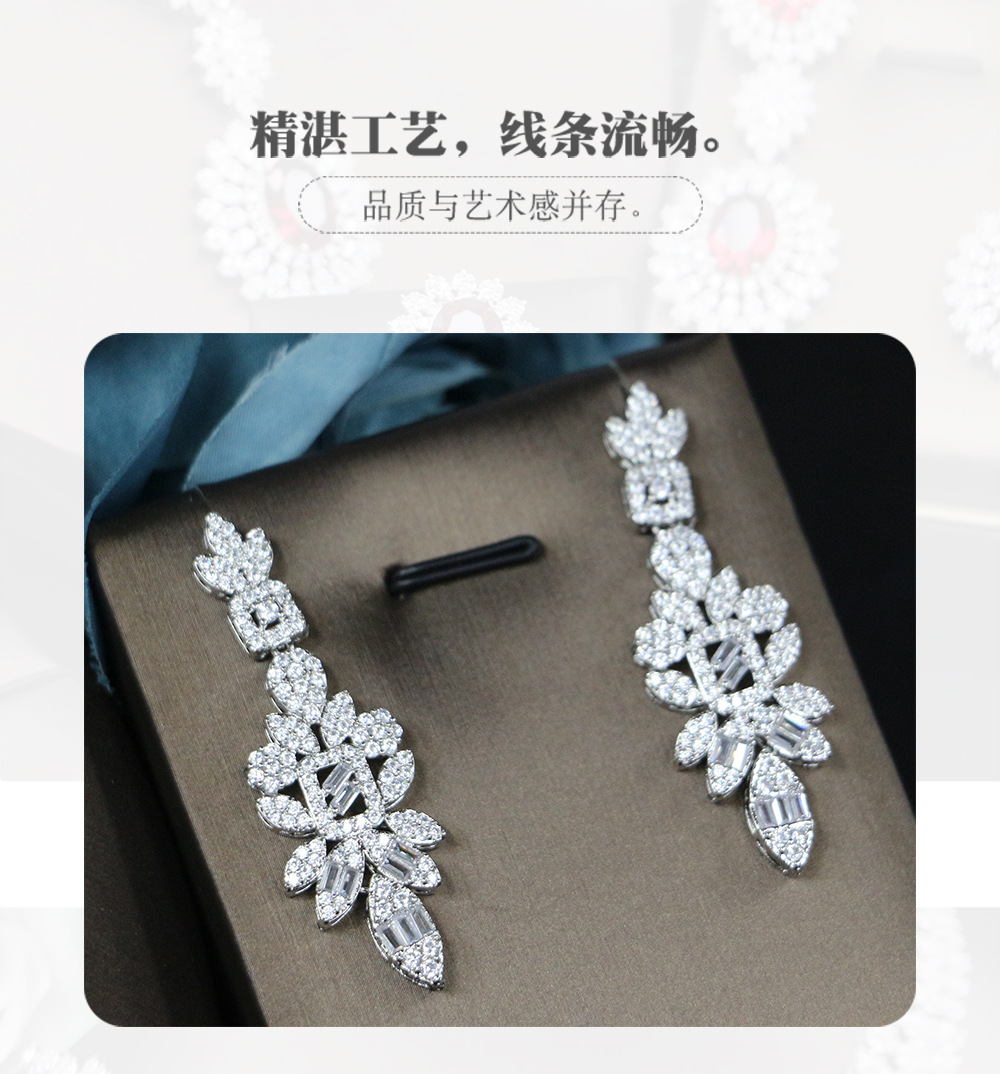 طقم مجوهرات زفاف من الزركون، مناسب لجميع المناسبات، يتضمن قلادة وأقراط مرصعة بالألماس، مكون من أربع قطع.