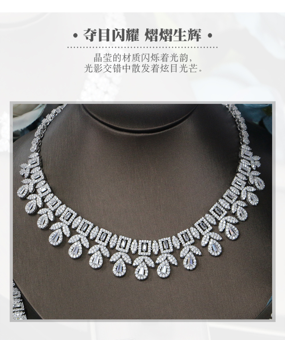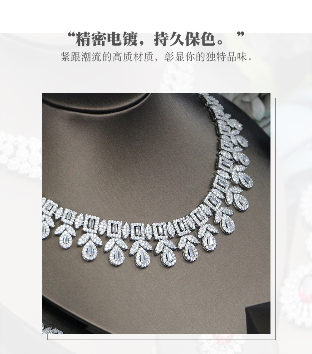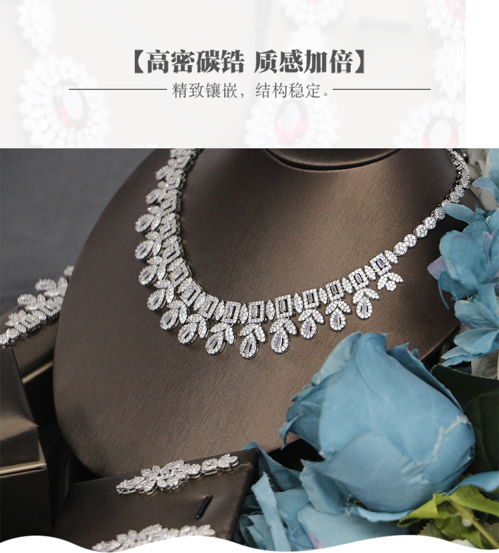طقم مجوهرات زفاف من الزركون، مناسب لجميع المناسبات، يتضمن قلادة وأقراط مرصعة بالألماس، مكون من أربع قطع. quantity