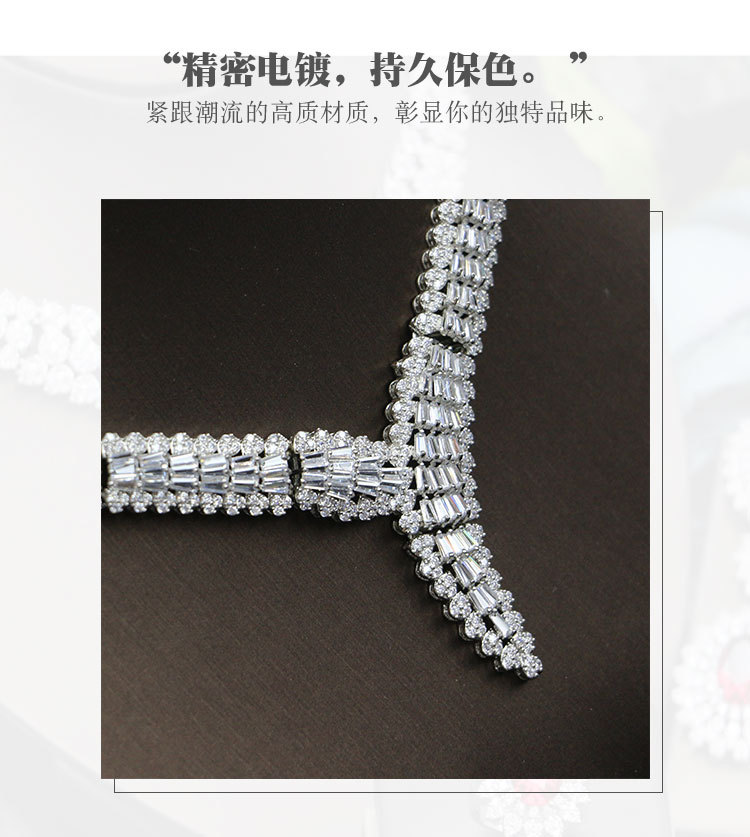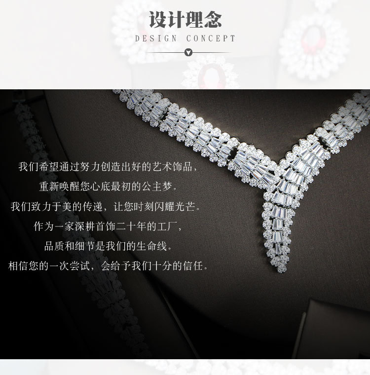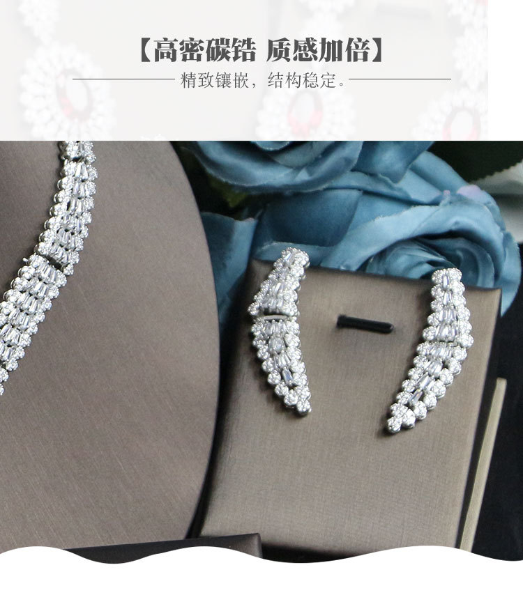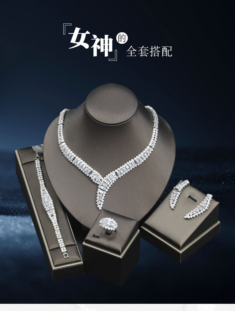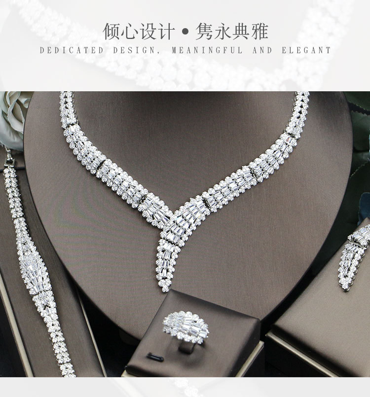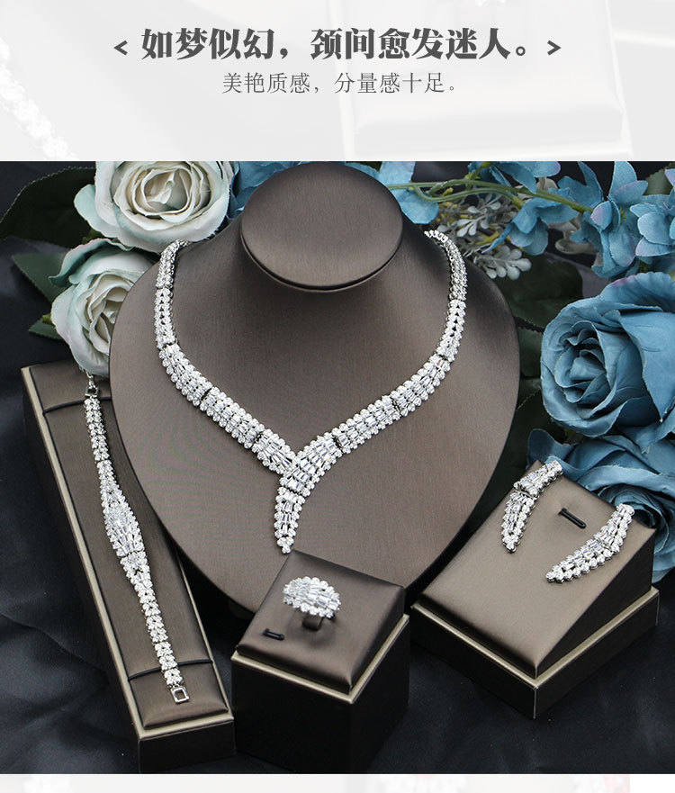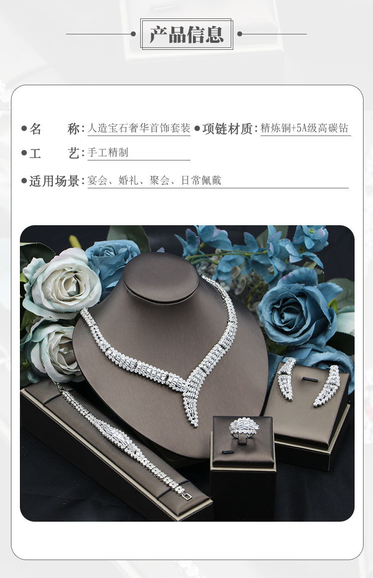 طقم مجوهرات للعروس، مناسبات الزفاف، إكسسوارات، عقد وأقراط مرصعة بالألماس والزركون، طقم من أربع قطع quantity
