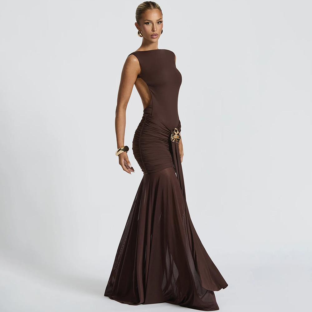 مصنوع من 180 جرامًا من حرير الحليب + قماش شبكي، تصميم شق مرتفع ومطوي رفيع, ملحوظة: يحتوي على زخرفة معدنية