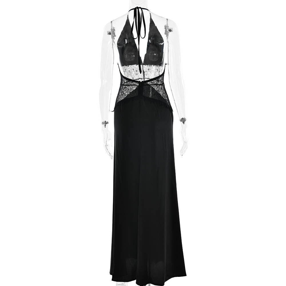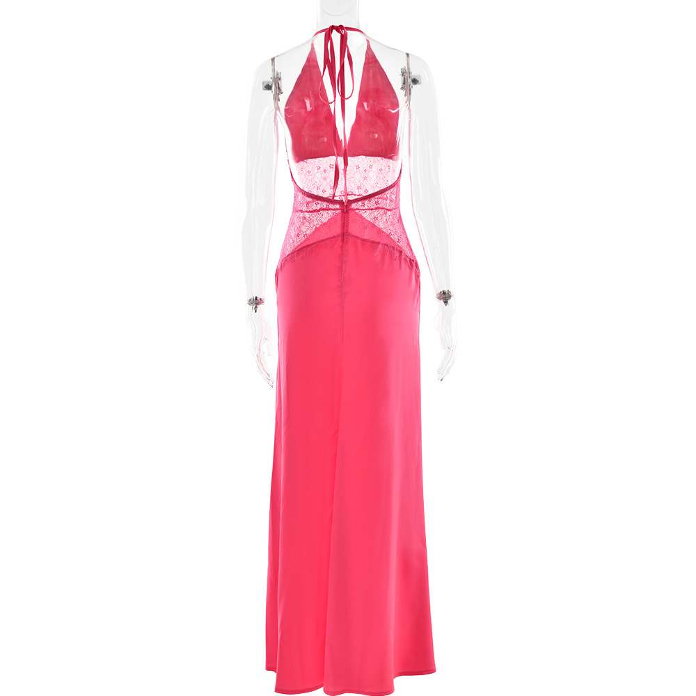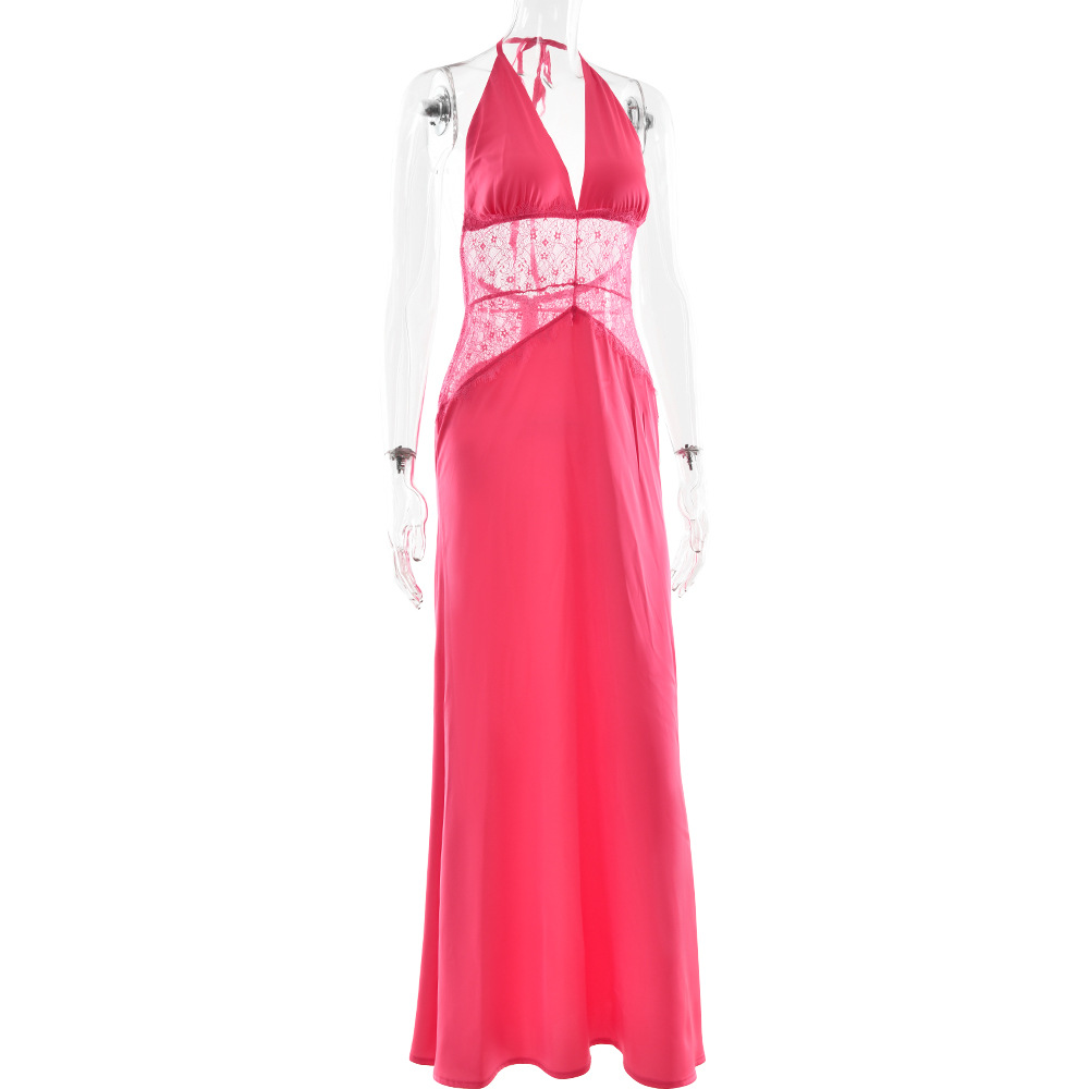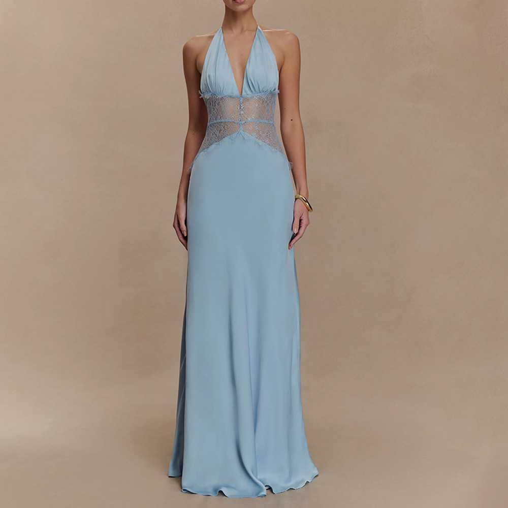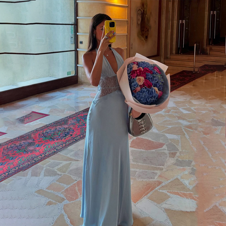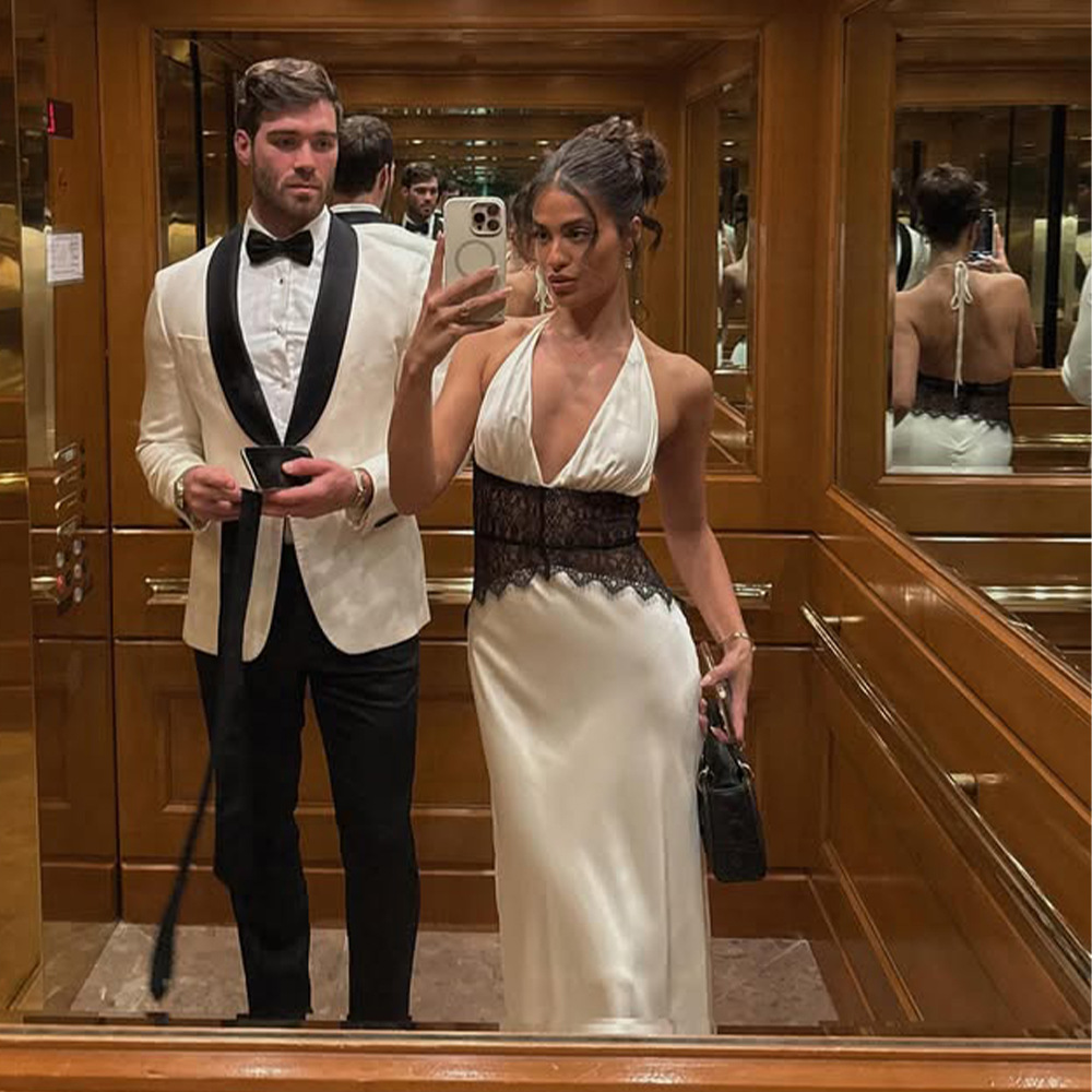 مصنوع من قماش ساتان حريري عالي الجودة 230 جرام، مع رقبة بدون أكمام وخياطة دانتيل وتصميم بدون ظهر