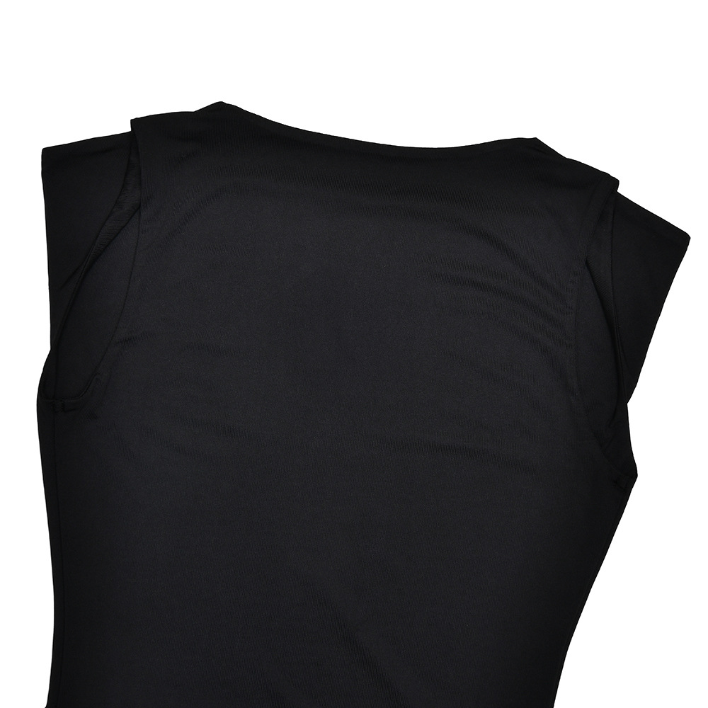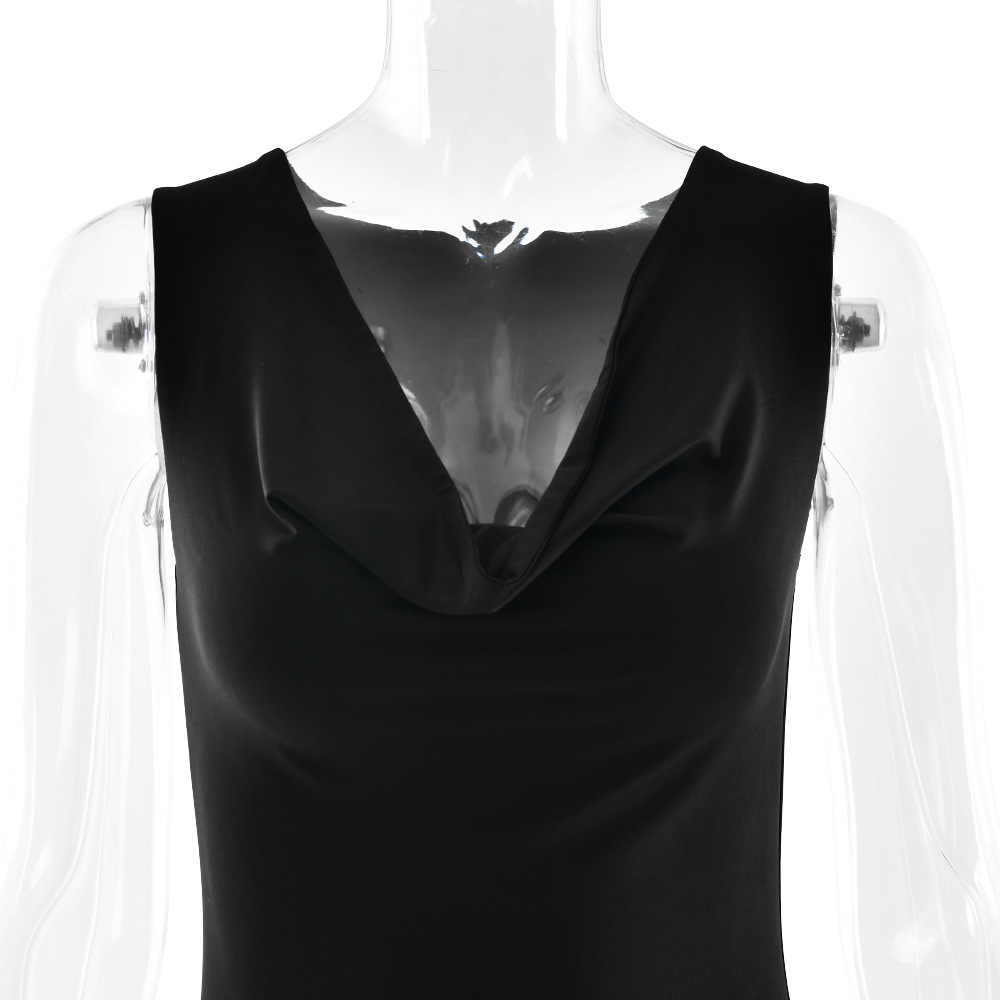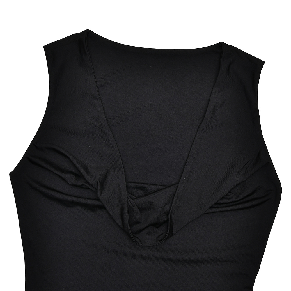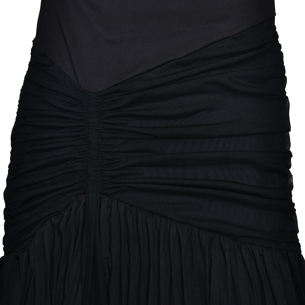 مصنوع من حرير الحليب + شبكة، مع طوق مكشكشة، بدون أكمام وتصميم مطوي