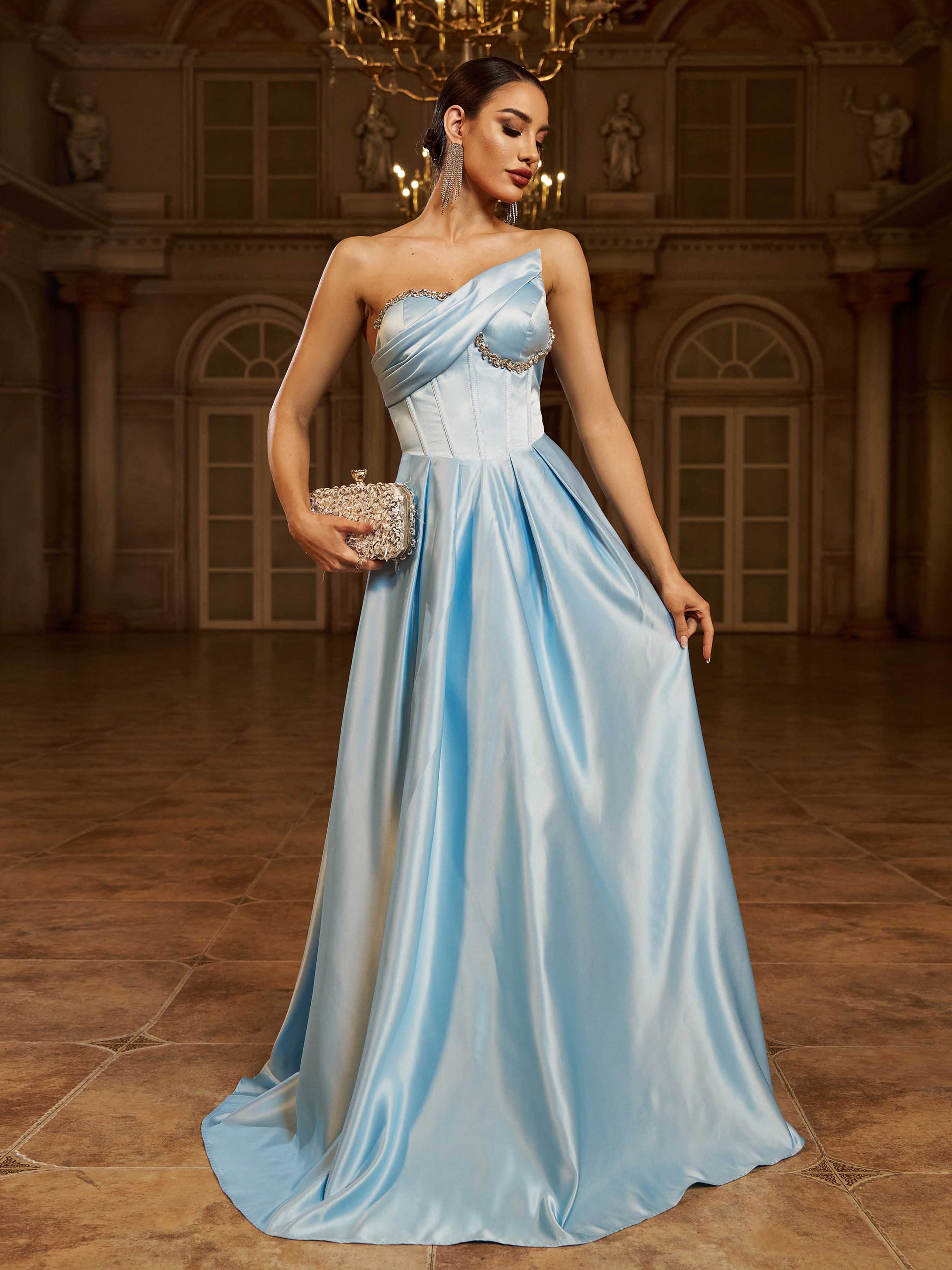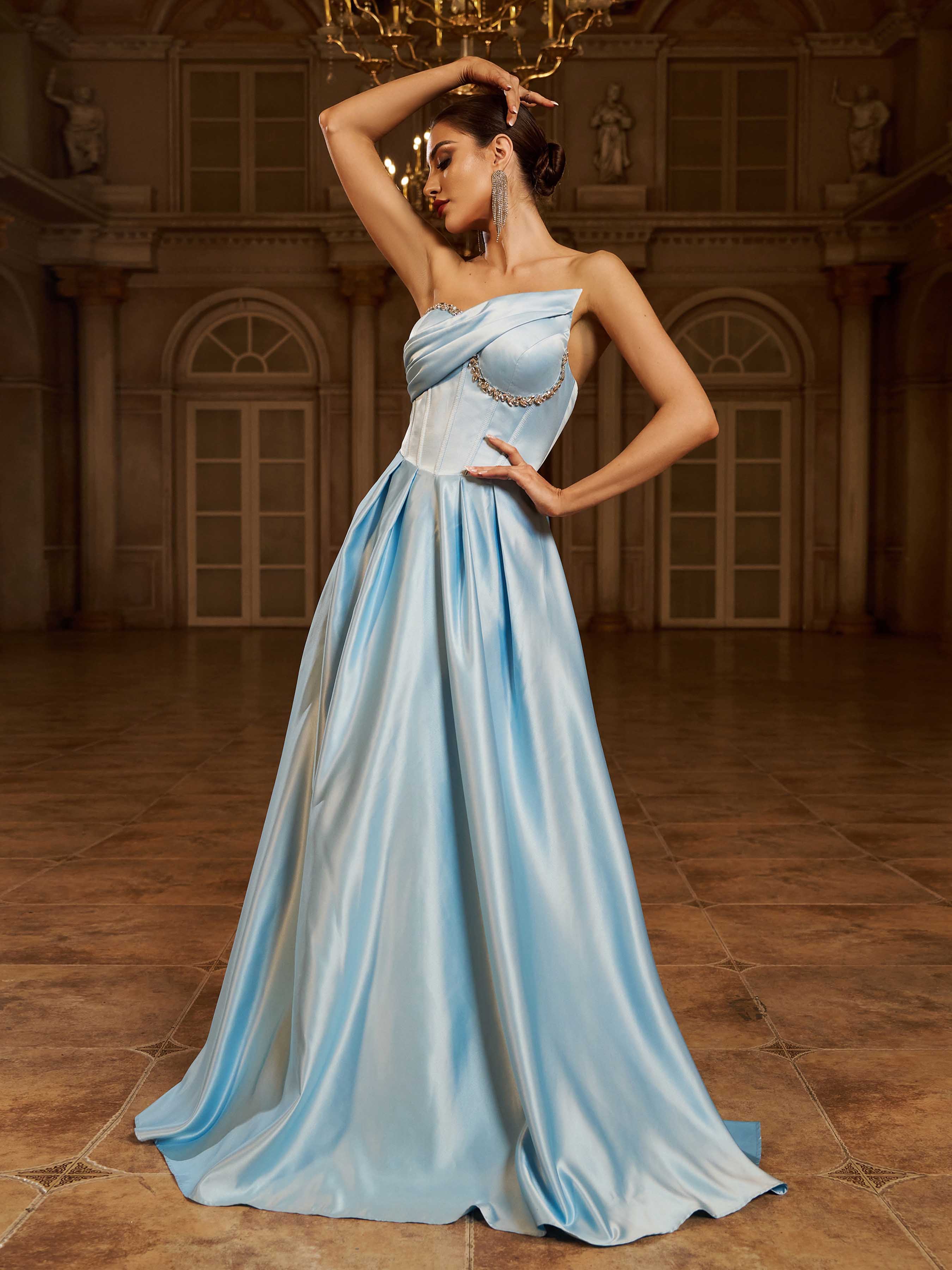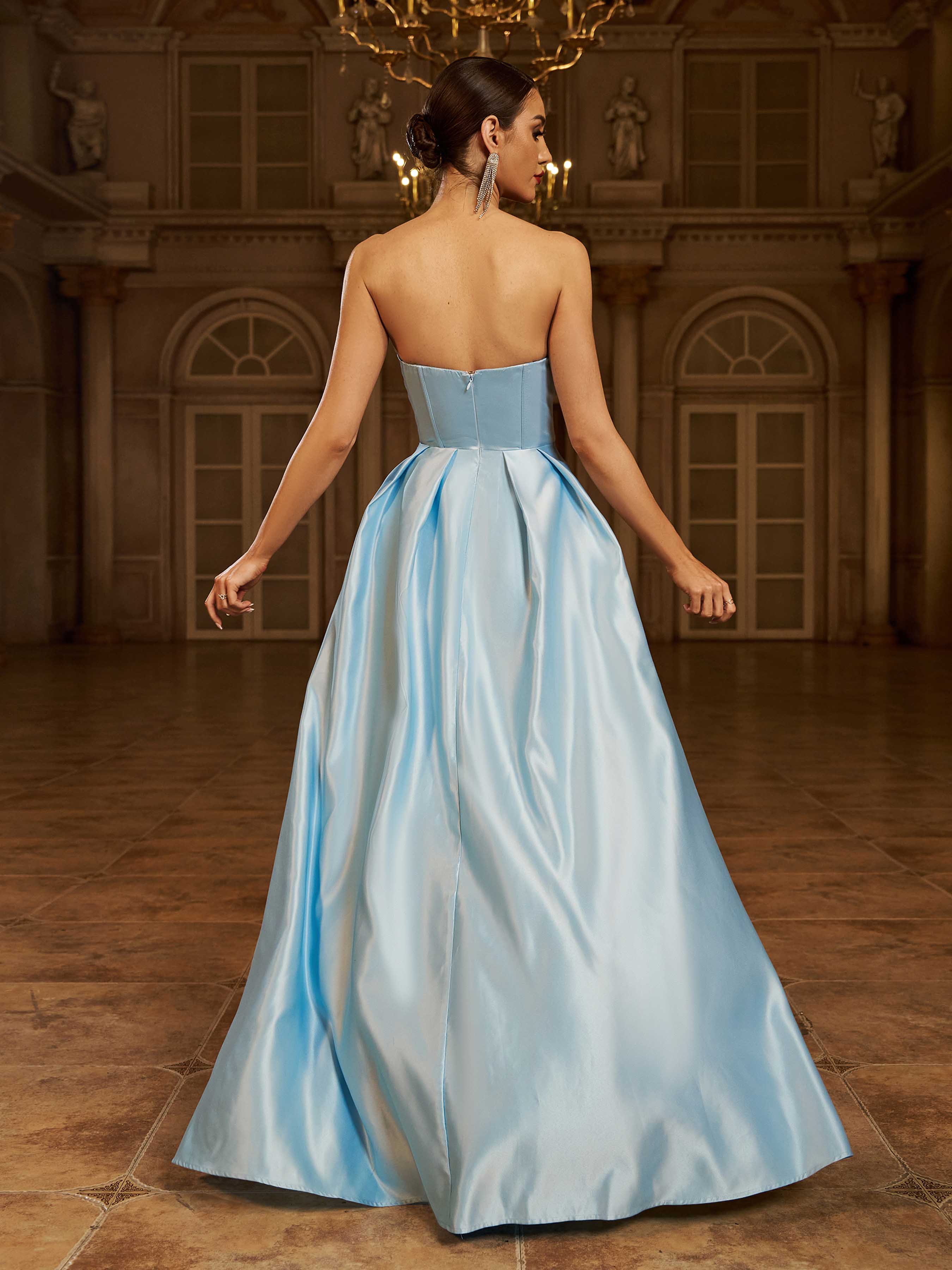 فستان سهرة فاخر بدون حمالات بتصميم A-line