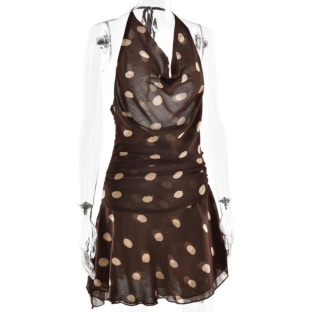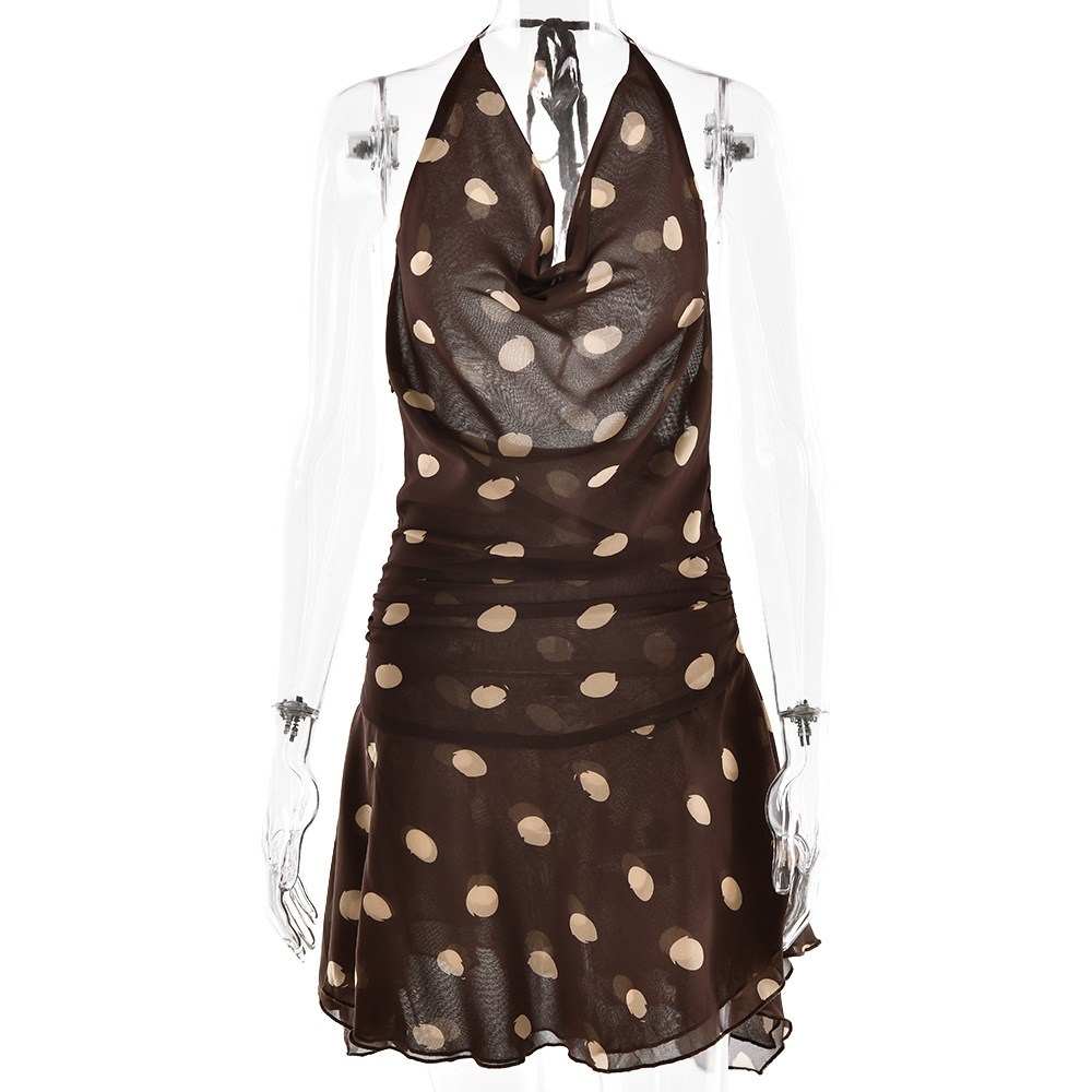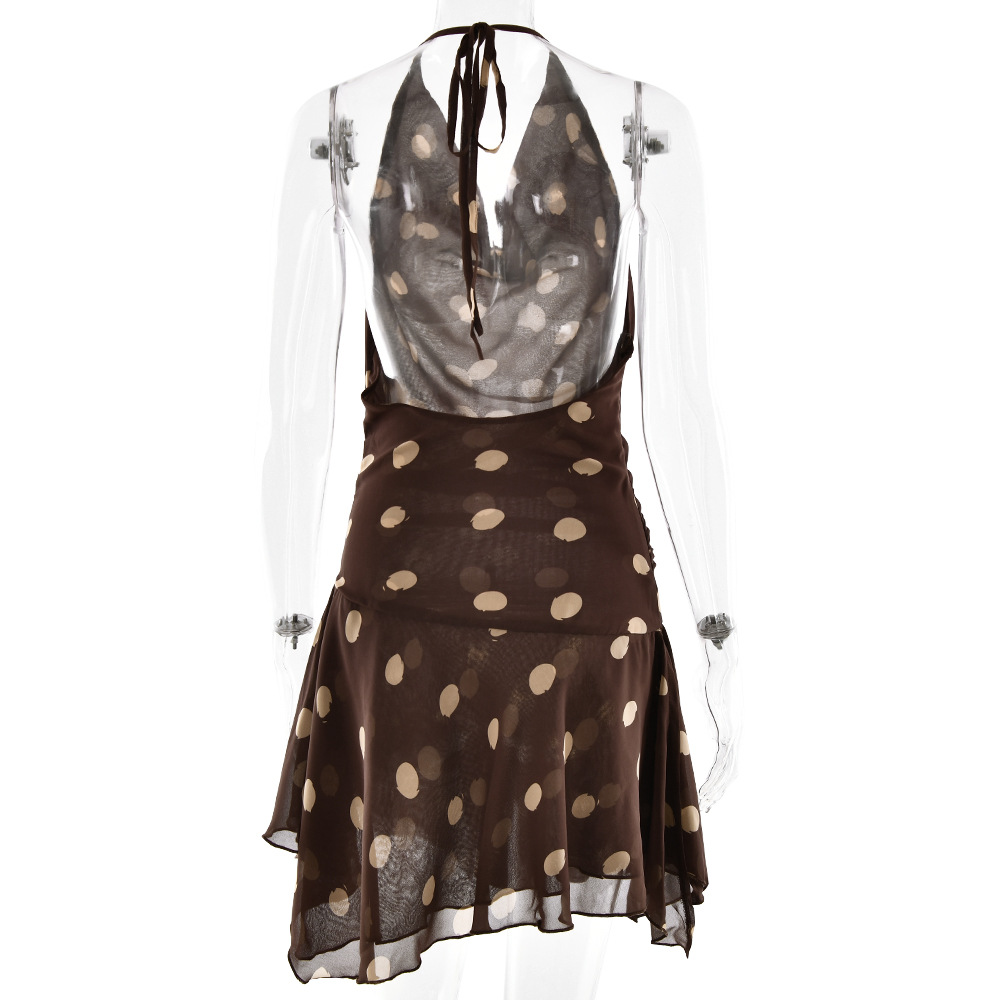مصنوع من قماش الشيفون، تصميم نقاط البولكا على شكل رقبة على شكل حرف V