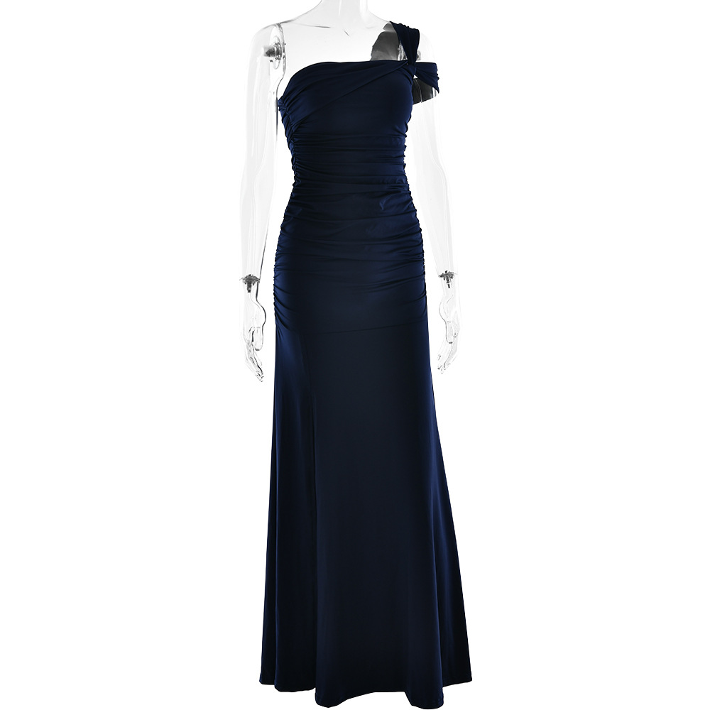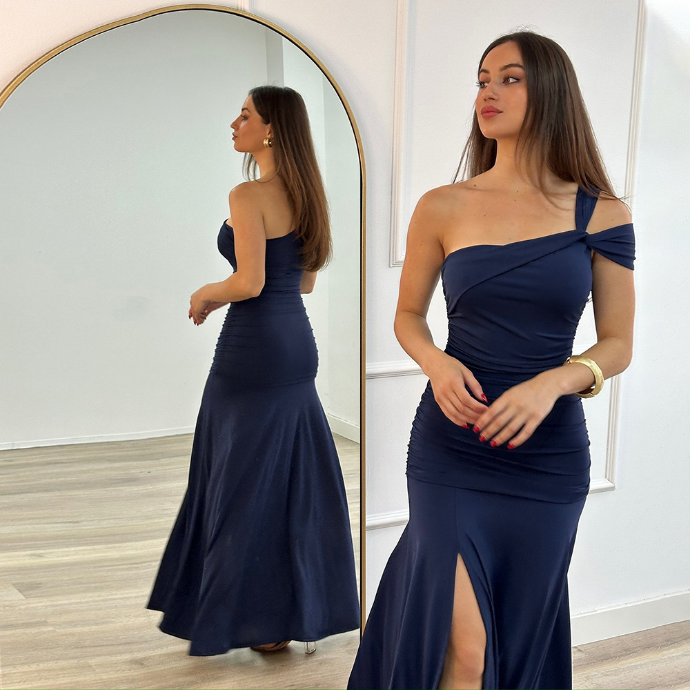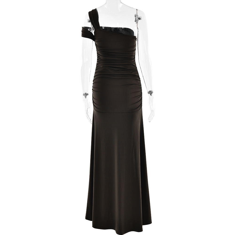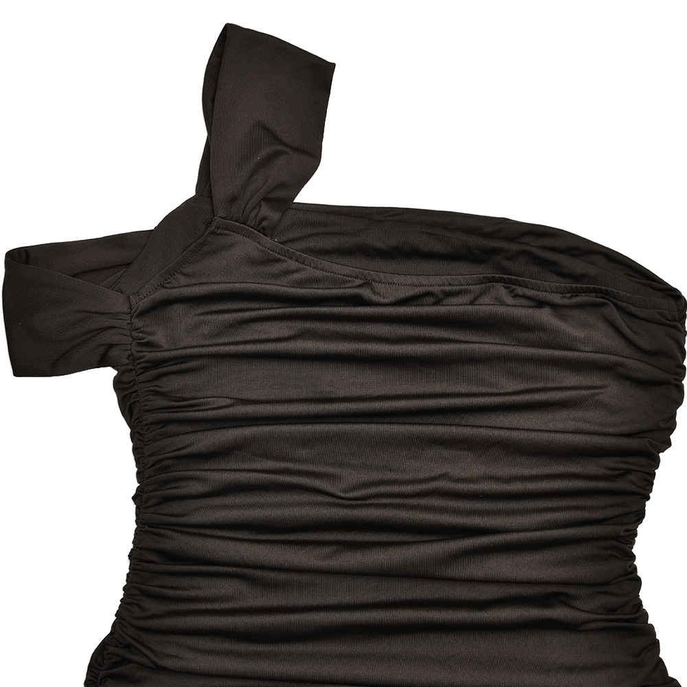 مصنوع من قماش حرير الحليب، تصميم شق مطوي على كتف واحد