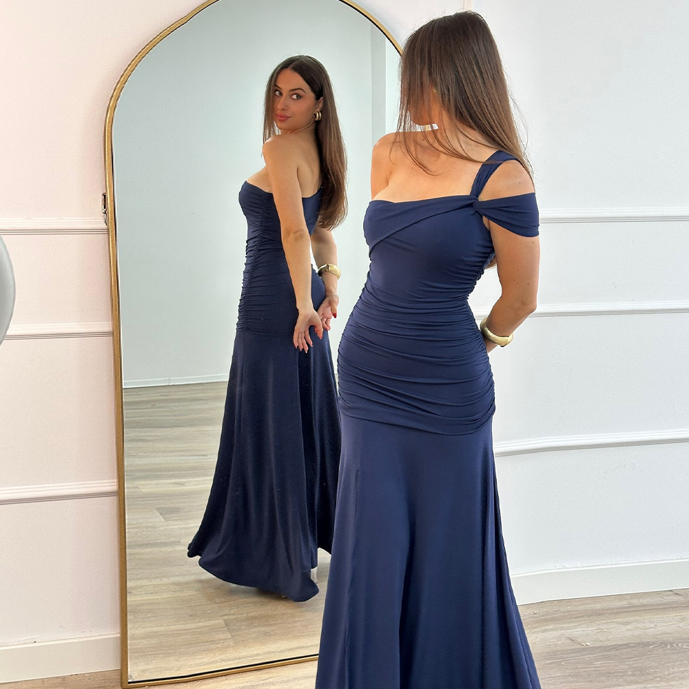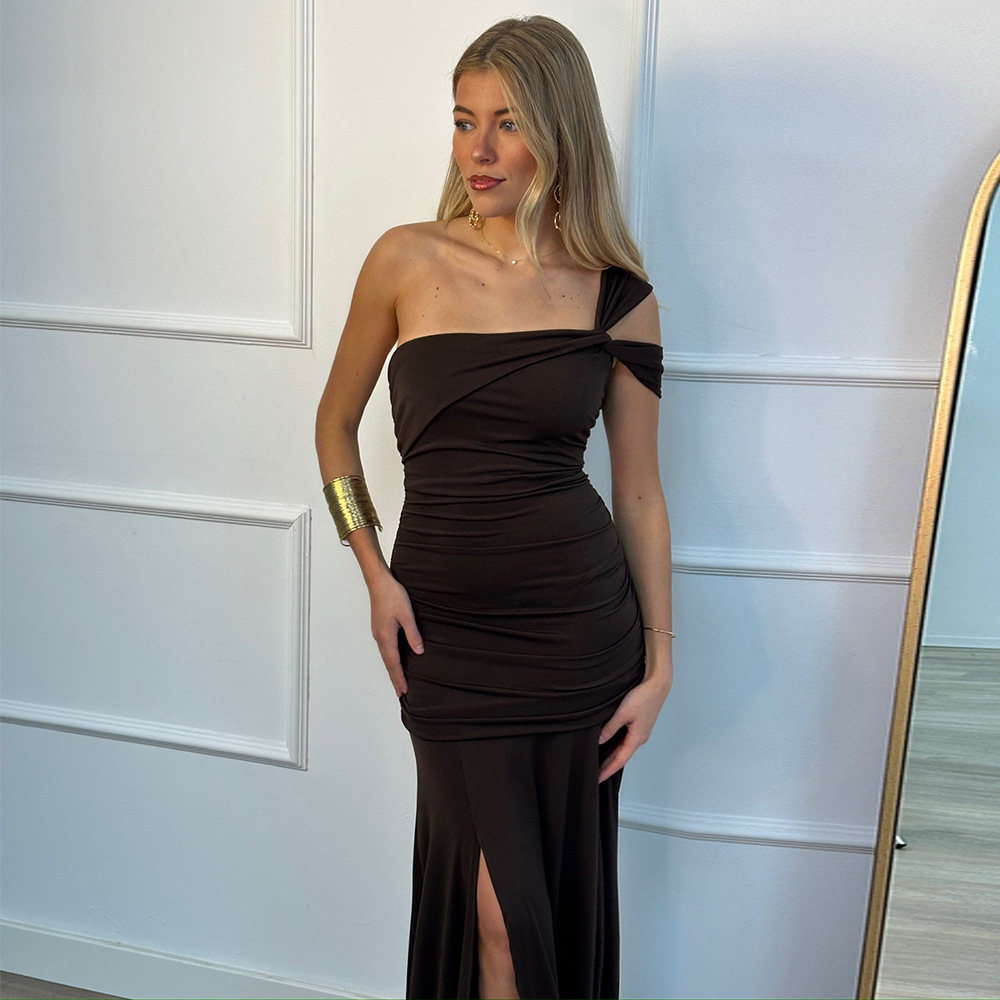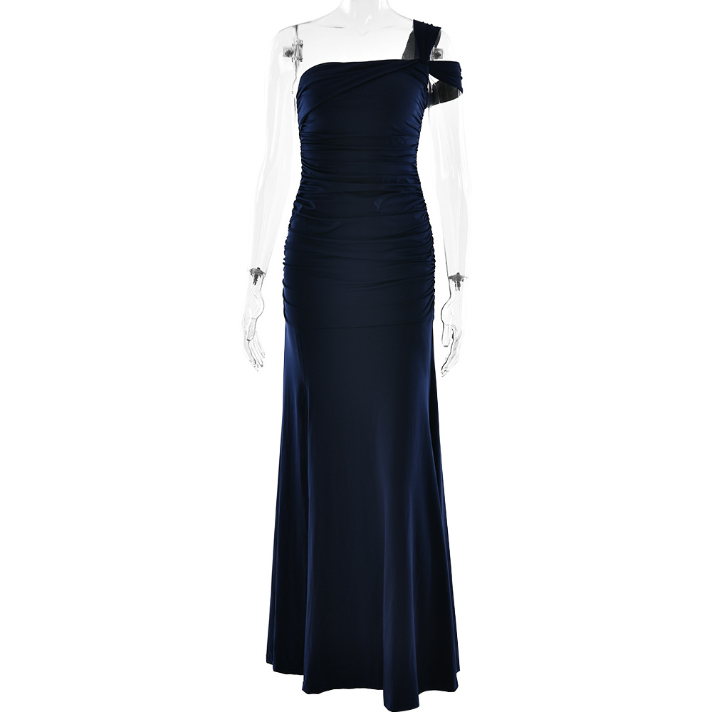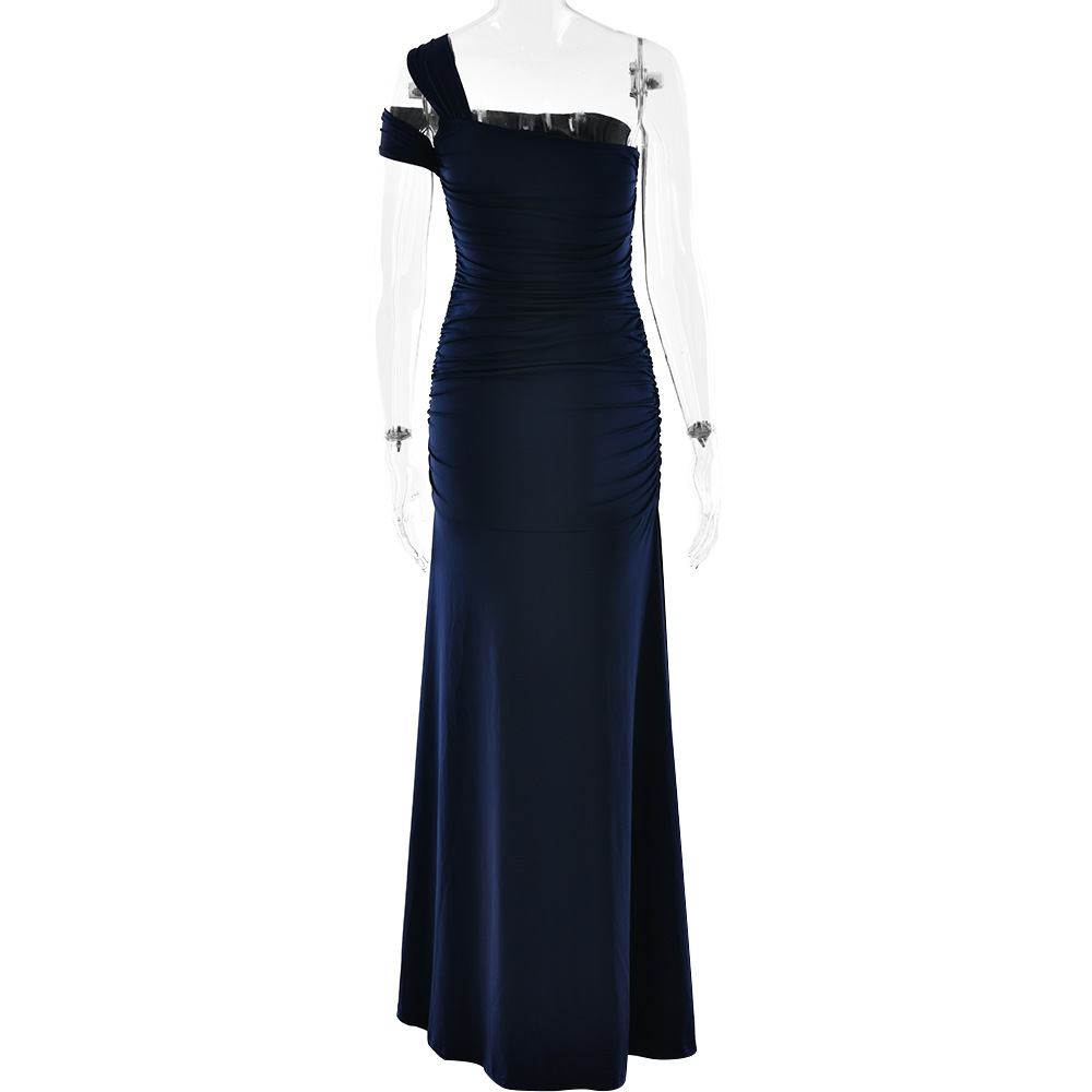 مصنوع من قماش حرير الحليب، تصميم شق مطوي على كتف واحد