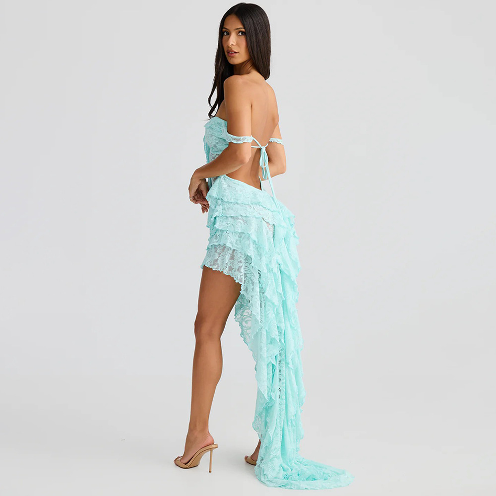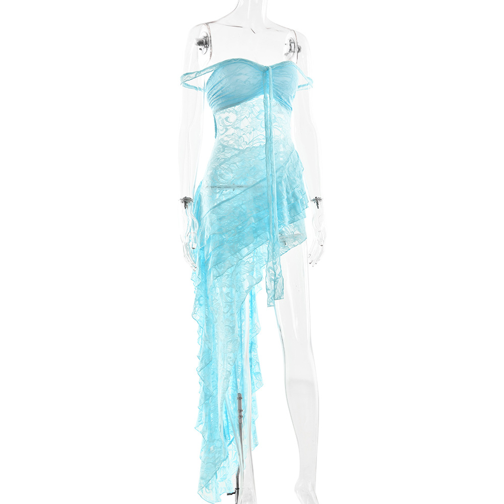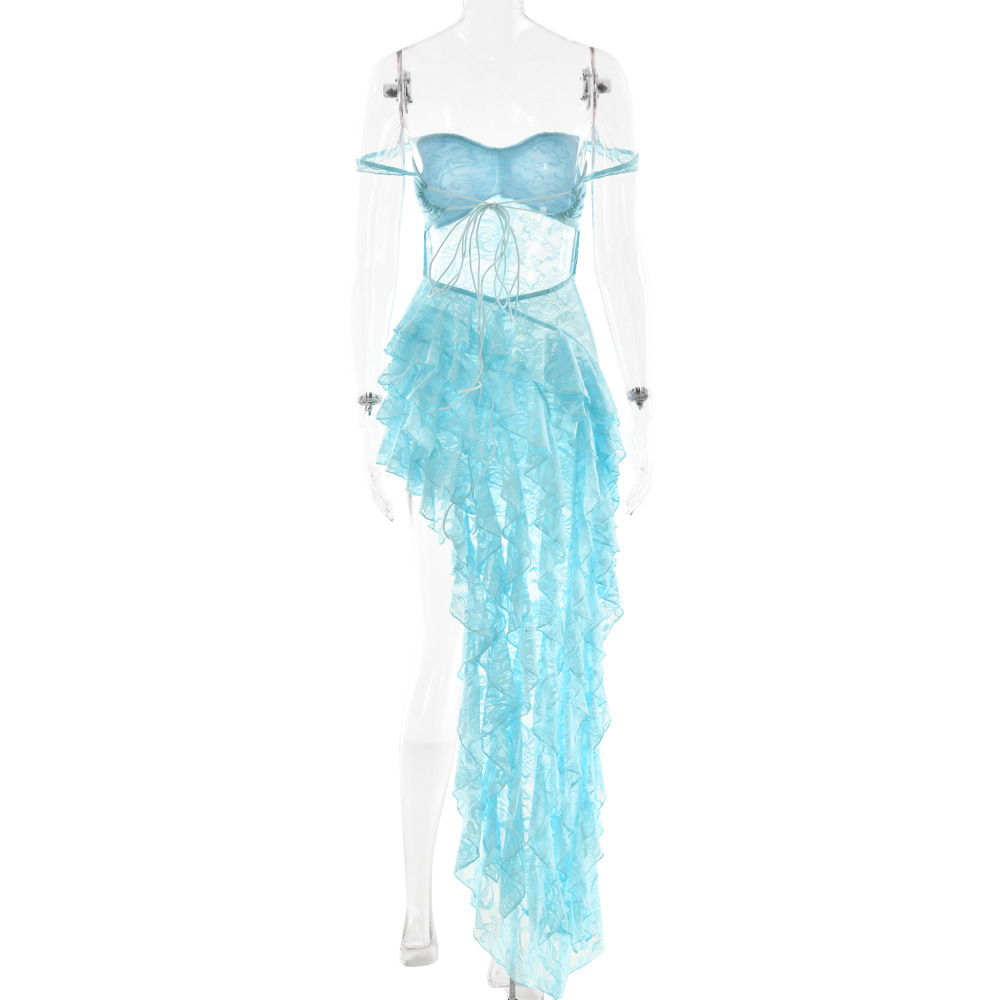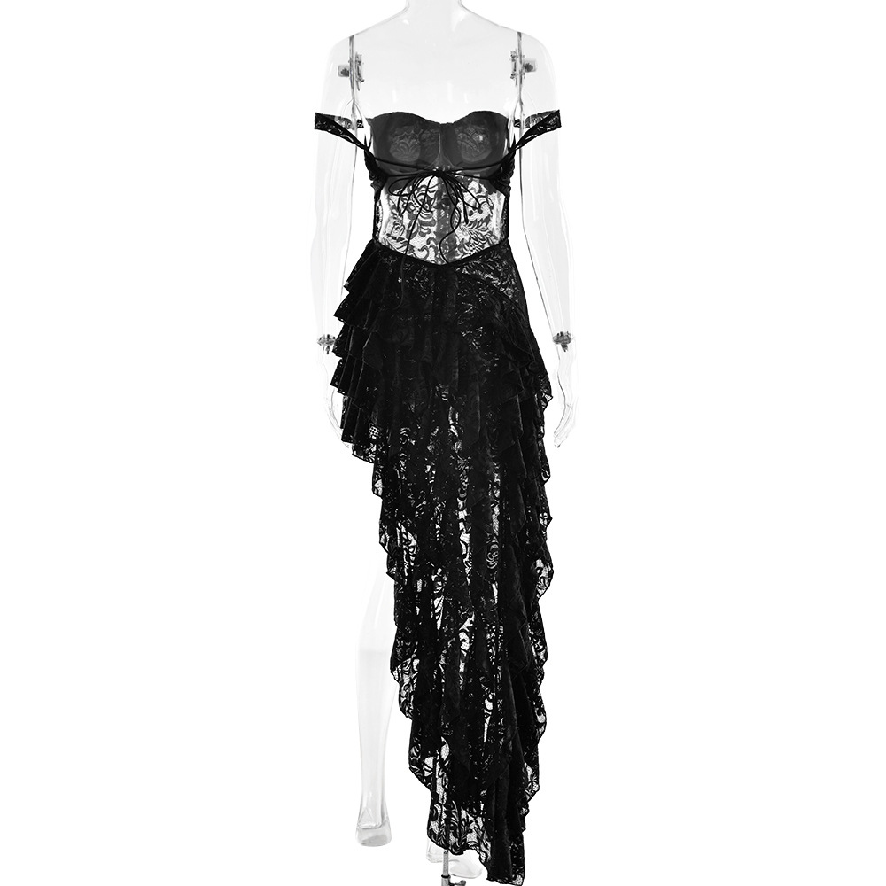مصنوع من قماش الدانتيل، مع تصميم أنبوبي غير منتظم في الجزء العلوي
