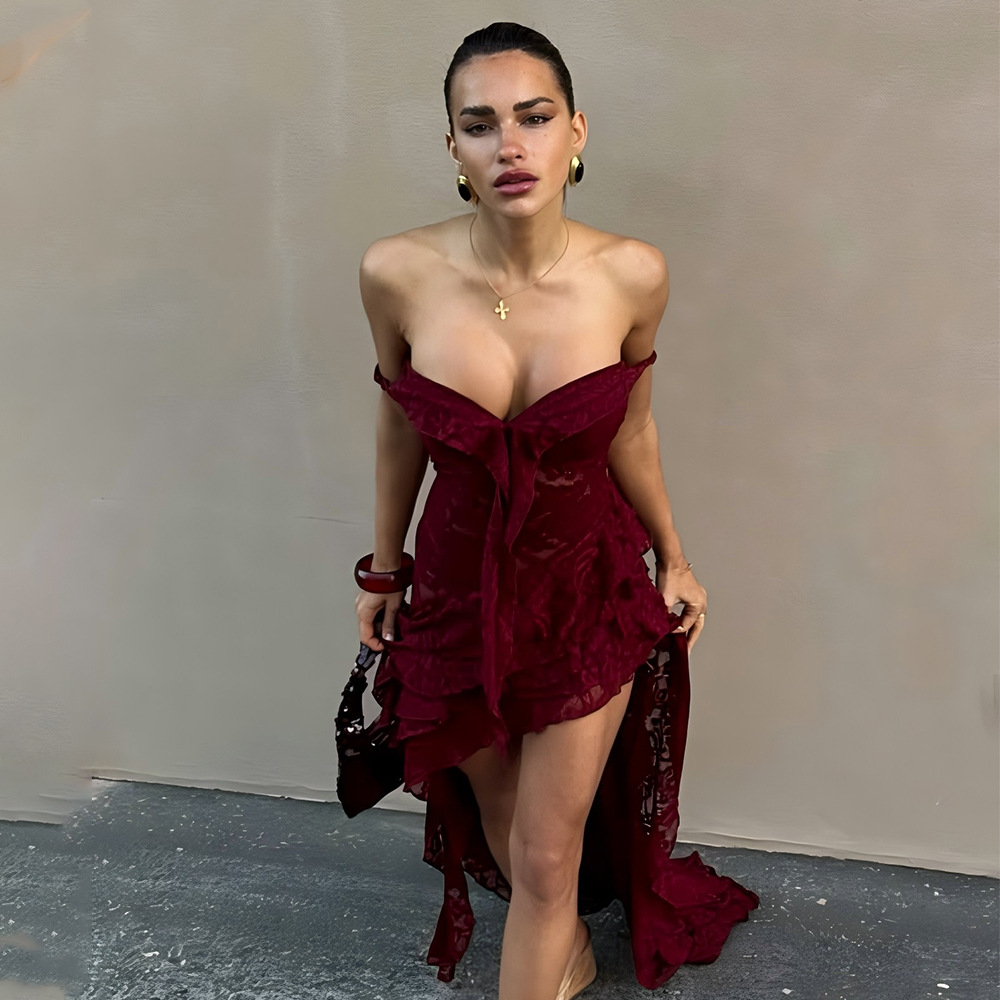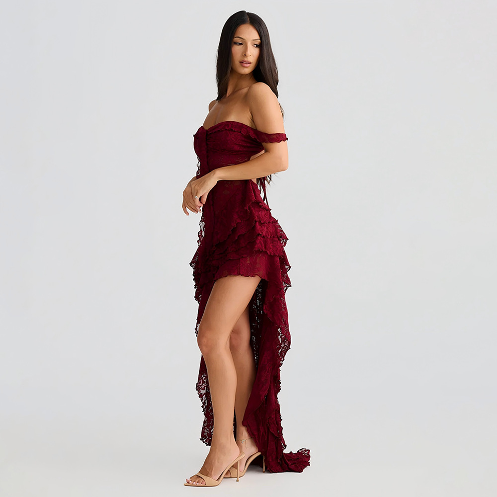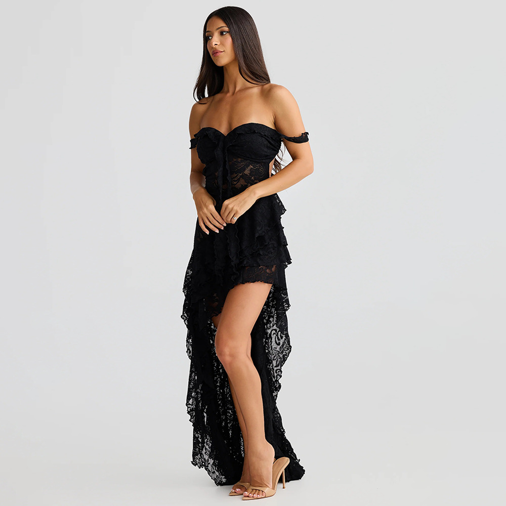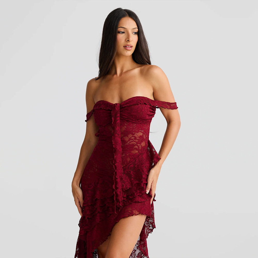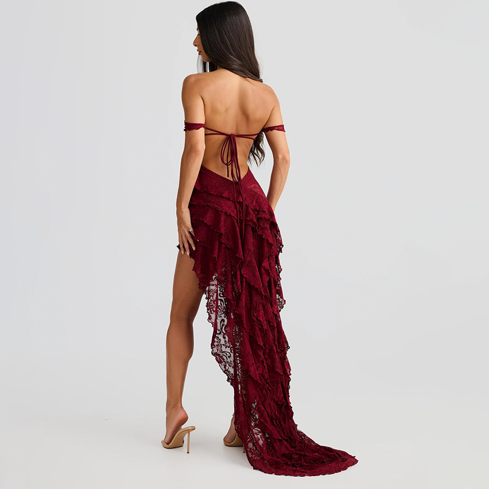 مصنوع من قماش الدانتيل، مع تصميم أنبوبي غير منتظم في الجزء العلوي