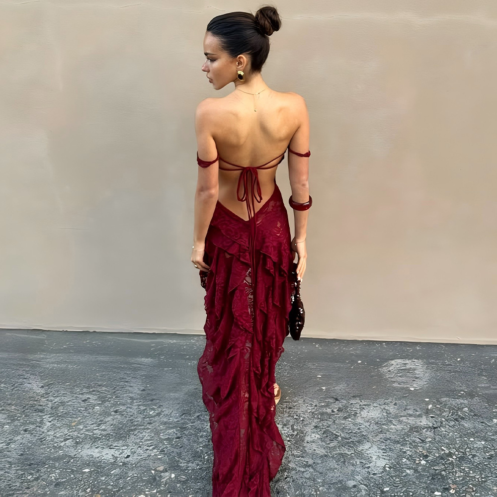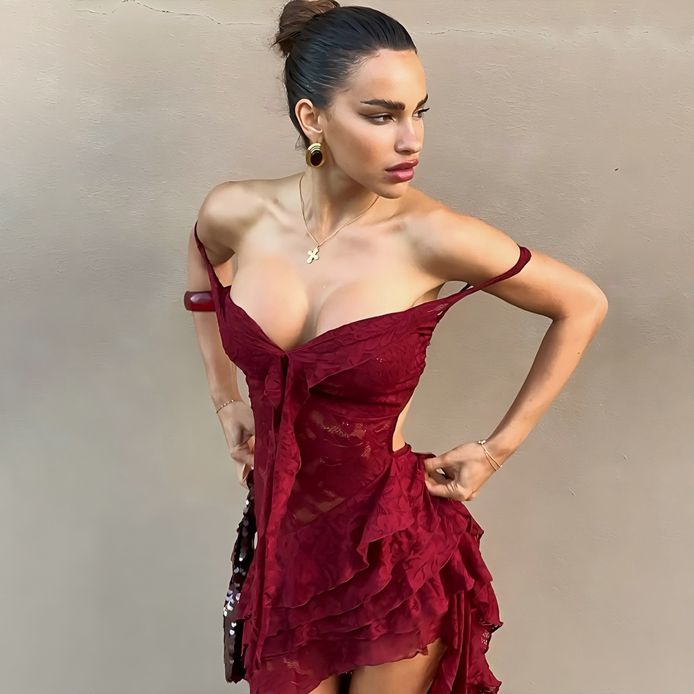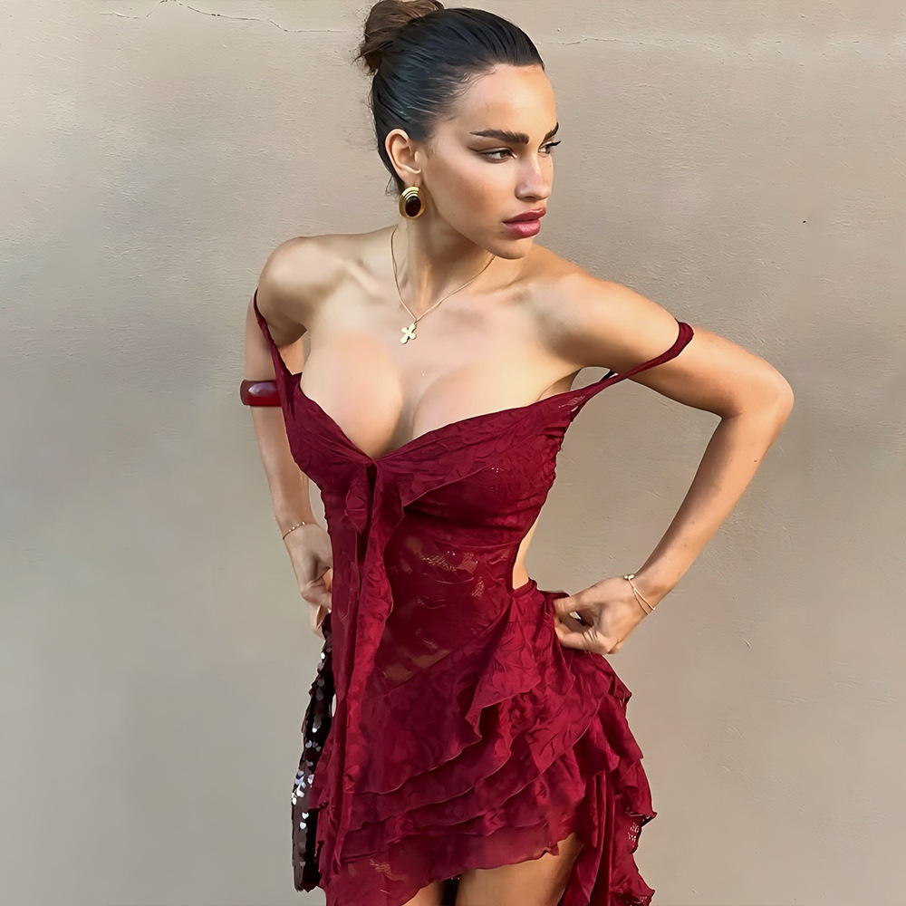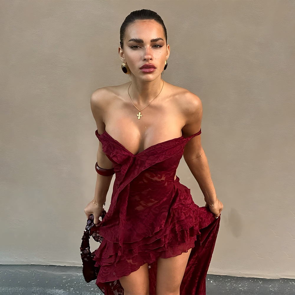 مصنوع من قماش الدانتيل، مع تصميم أنبوبي غير منتظم في الجزء العلوي