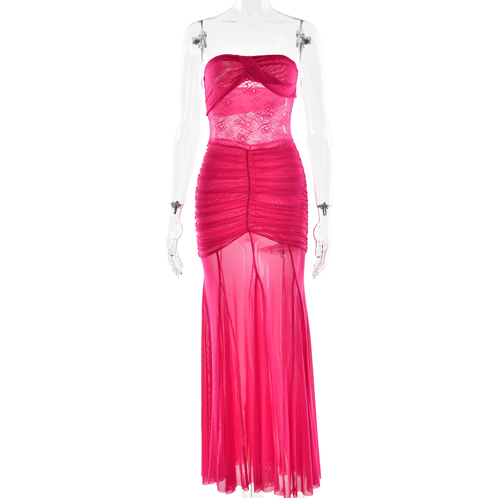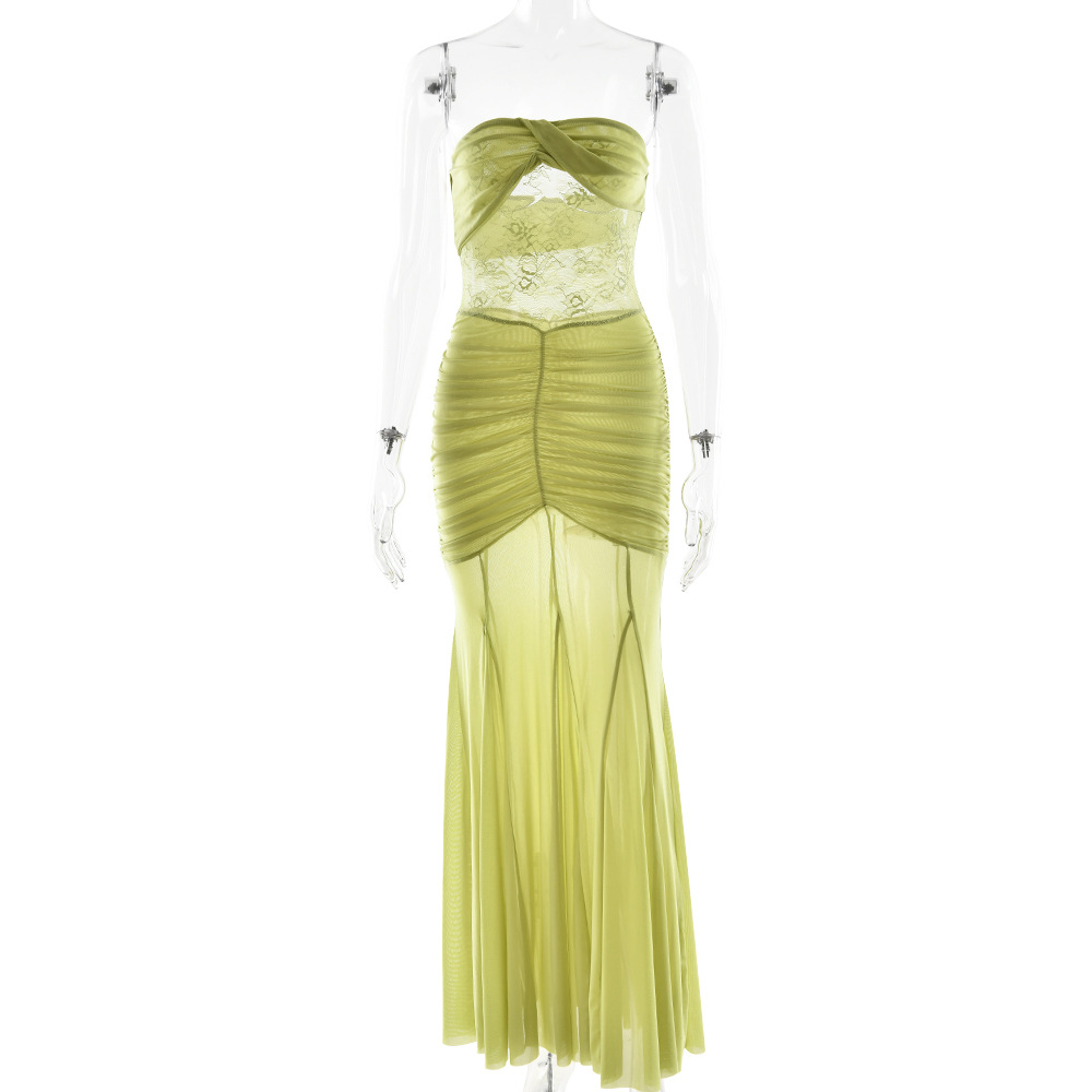 مصنوع من قماش شبكي + دانتيل، مع تصميم أنبوب علوي مجوف